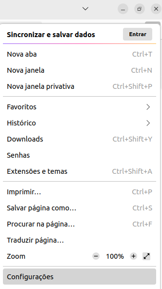 - Primeiramente acesse o menu no canto superior direito e clique em ‘Configurações’