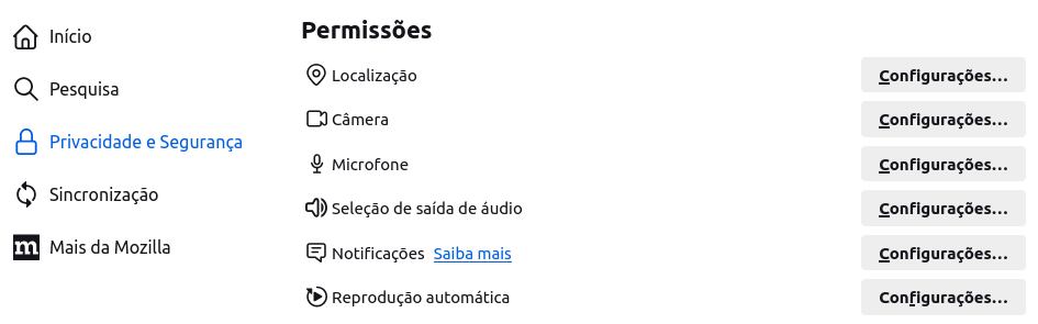 - Na opção ‘Privacidade e Segurança’ desça até a opção de permissões e clique em Localização > Configurações: